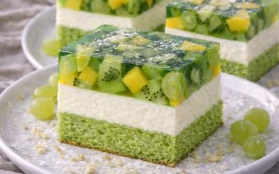 Składniki: Na zielony biszkopt 4 jajka 120 g cukru 120 g mąki pszennej 2 łyżki oleju 1 łyżeczka proszku do…
