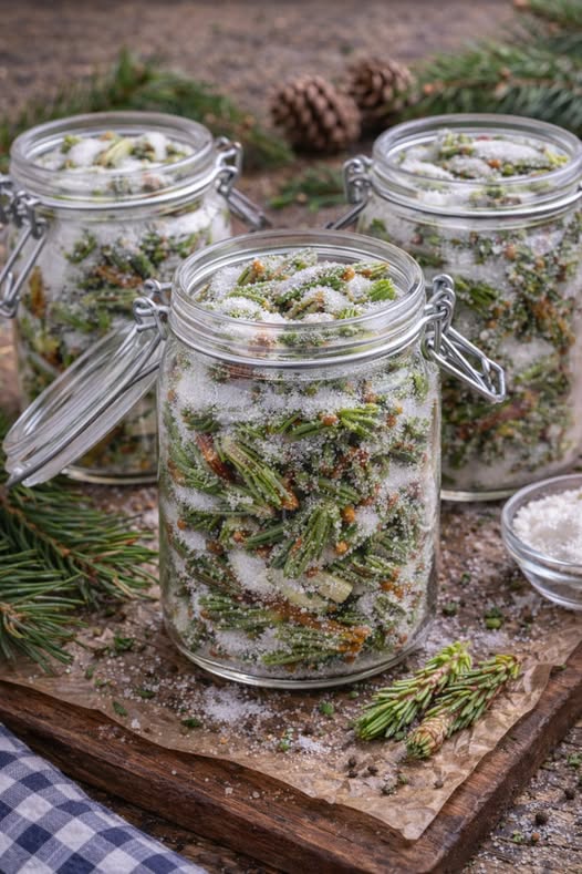 Przygotuj czyste i wyparzone słoiki. Na dno każdego wsyp cienką warstwę cukru. Następnie ułóż warstwę pędów sosny. Znowu posyp cukrem i układaj kolejne warstwy naprzemiennie, aż do zapełnienia słoika. Ostatnią warstwą powinien być cukier.